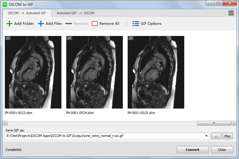 DICOM to GIF is a Windows app for converting a series of DICOM images to