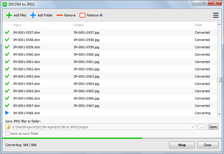 DICOM to JPEG is a Windows app for converting DICOM images to JPEG format.